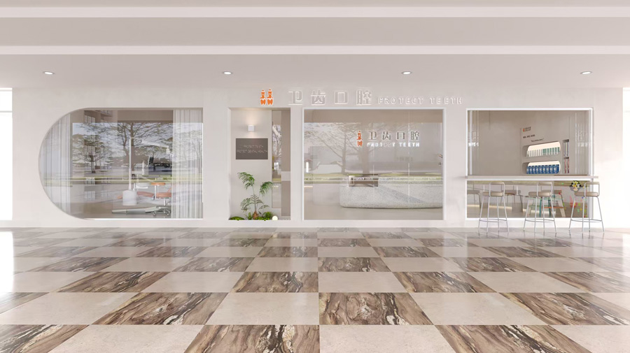 在柜台后方可以设置展示架,用于展示口腔诊所的服务项目、医生资质、荣誉证书等信息,增加患者对诊所的信任度。